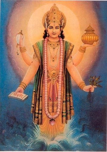 Me inclino ante el Señor Dhanvantari, el divino sanador que sostiene un cántaro de néctar en sus manos, que alivia todas las aflicciones y enfermedades. Me inclino ante el Señor Vishnu, sustentador de los tres mundos.